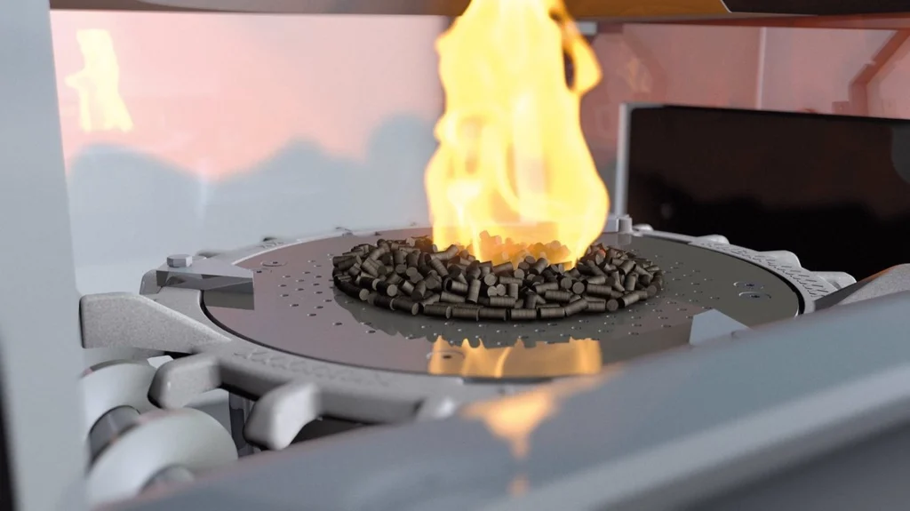 Suure põletusplaadi abil on tagatud stabiilne põlemisalune ja pelletid põlevad täielikult ära. Põletusplaadilt langev tuhk eemaldatakse automaatselt. Tsüklontehnoloogia surub tolmuosakesed väljapoole ja langevad tuhalaekasse. CleanEfficiency 2.0 tehnoloogia vähendab oluliselt peene tolmu teket põlemiskambris. Sama põlemissüsteem, vähem heitmeid. Tulealuse kõrguse suurendamine tagab pelletite tõhusama põlemise. Peened tolmuosakesed ei aurustu peaaegu üldse, vaid seovad end tuhaga ja eemaldatakse seejärel.